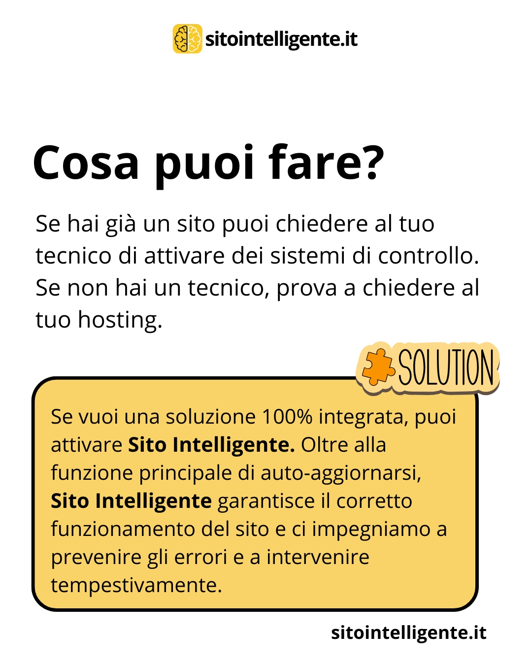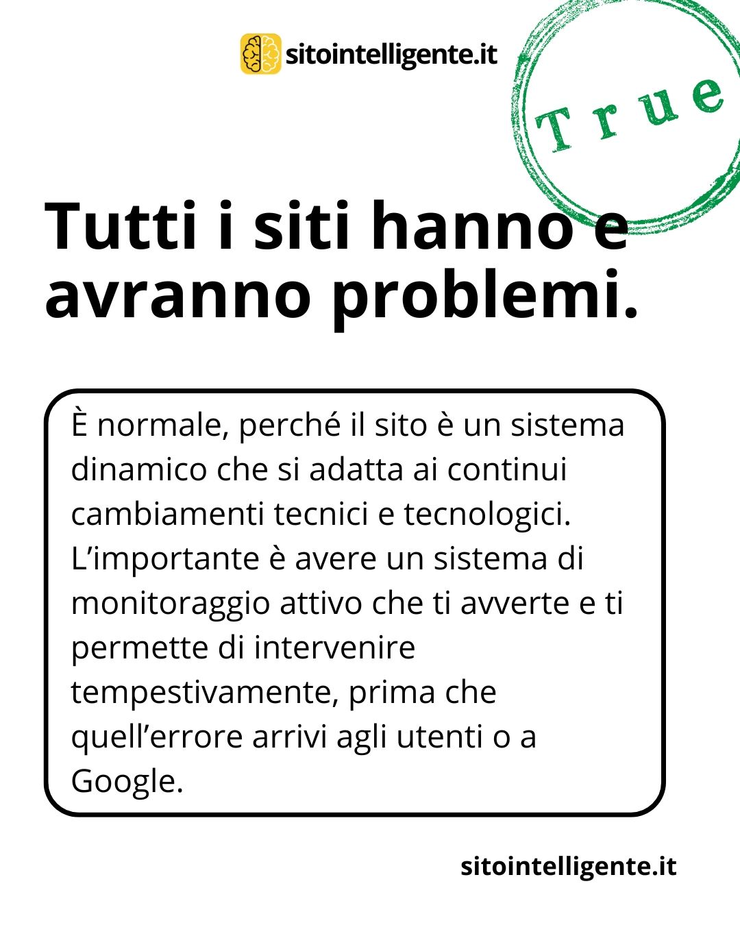 La verità? Tutti i siti hanno problemi. Ma chi ha @sito.intelligente li risolve prima che diventino disastri.